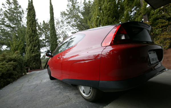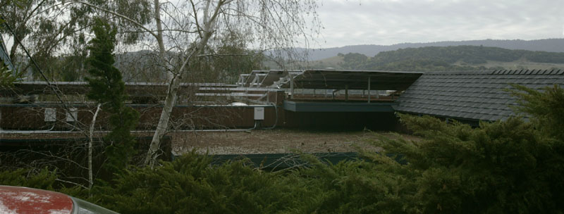 Insight's solar panel friends viewed over the hood on a cloudy day in CA