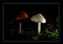 It usually isn't hard to find mundane fungi and mushroom subjects for mushroom photography (just snap some pictures of the dry rot eating away at the wood in your basement), but it isn't always easy to find fungi subjects 'worthy' of fine art mushroom photography or to capture wild mushroom photographs which will provide the enhanced digital images from which wild mushroom art prints can be printed. While mushroom mycology means that one may well find several kinds of unwanted fungi growing in a dank corner of the basement, fortunately the fungi kingdom is diverse and fungi grow in many more aesthetically appealing and enriching environments suitable for mushroom photography, not only in the forest, but in grasslands (e.g. field mushrooms) and many other more rich and colorful locations as well. In order to find the raw materials from which to build the master mushroom photograph for a C Ribet wild mushrooms art print, both luck and art must come together to provide the mycological micro-environment around the mushrooms which will give the mushroom photograph the character to grow from a mere mushroom photograph through a mushroom photograph master and eventually to a final wild mushroom art print. Creating wild mushroom art prints from wild mushrooms are a special kind of mycological adventure. Finding the wild mushrooms for the prints is just the first step in the mushroom photography process. Luckily the mycological world of mushrooms and the fungi kingdom is broad and there is no shortage of fine subjects for wild mushroom art prints.